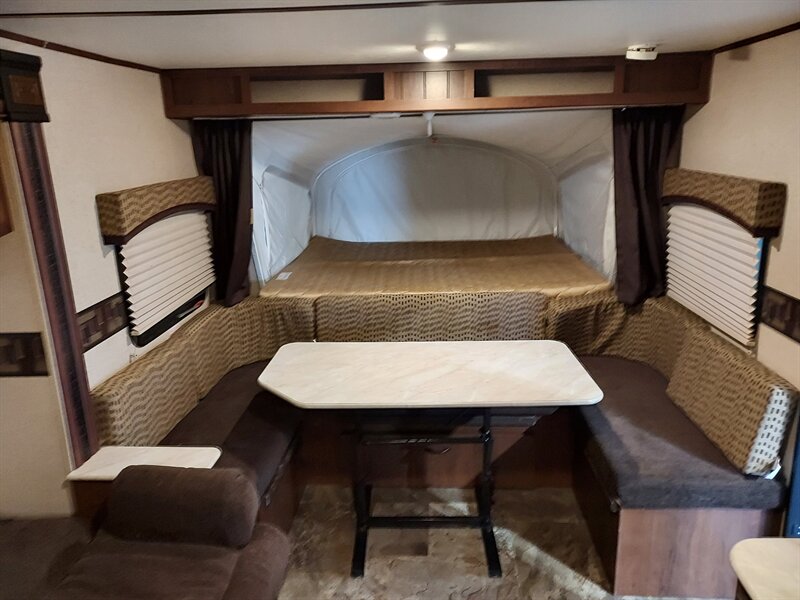The 2015 Jayco Feather Light X23B Hybrid is a versatile travel trailer designed for families and adventurers seeking comfort and convenience on the road. This model combines the benefits of both a traditional camper and a tent, offering a spacious interior while maintaining a lightweight profile for easy towing.