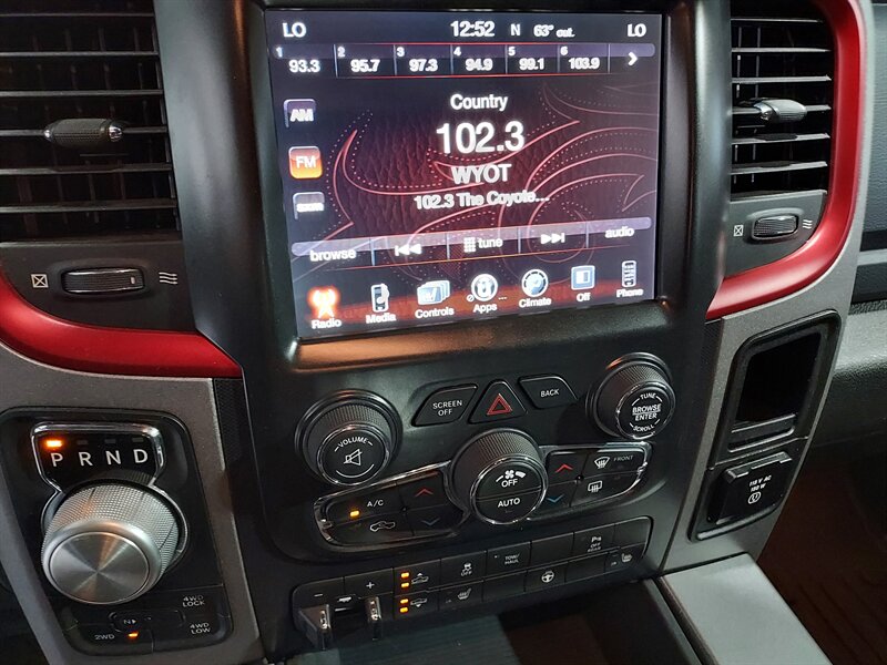 The 2017 RAM 1500 Rebel is equipped with a range of factory default features that enhance convenience and technology. The Uconnect infotainment system is presented on a large touchscreen display, providing easy access to navigation, audio controls, and smartphone integration through Apple CarPlay and Android Auto. Bluetooth connectivity allows for